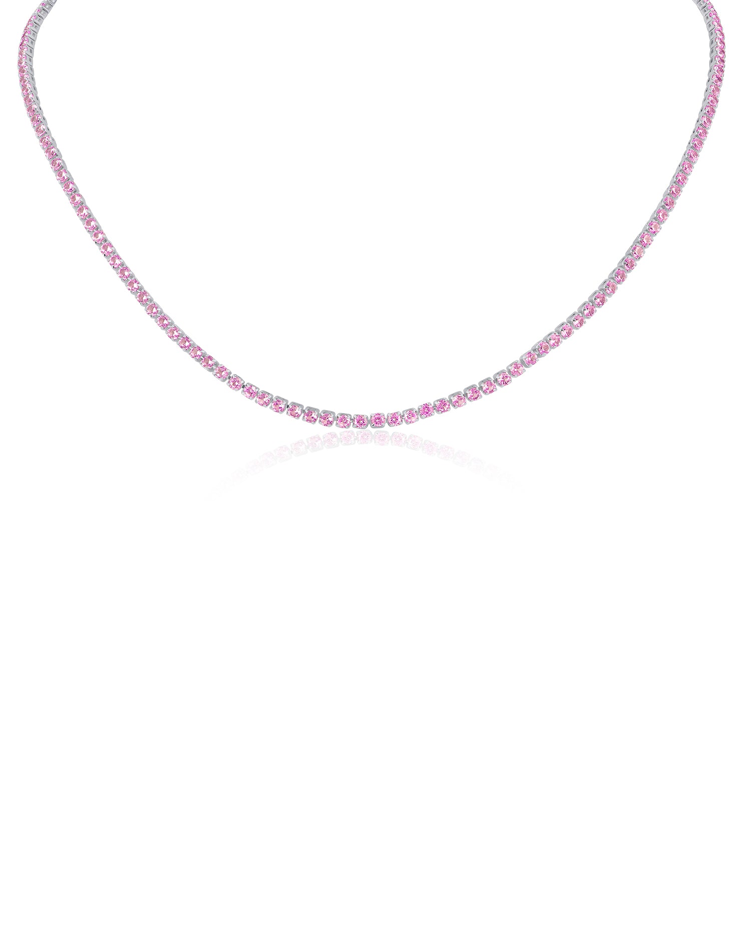 This Delicate 18 cttw Round Cubic Zirconia tennis necklace boasts dainty 2mm stones and a convenient lobster clasp closure, making it the ideal everyday accessory! The sleek design, set in rhodium plated brass, exudes elegance and adds a touch of sophistication to any outfit.