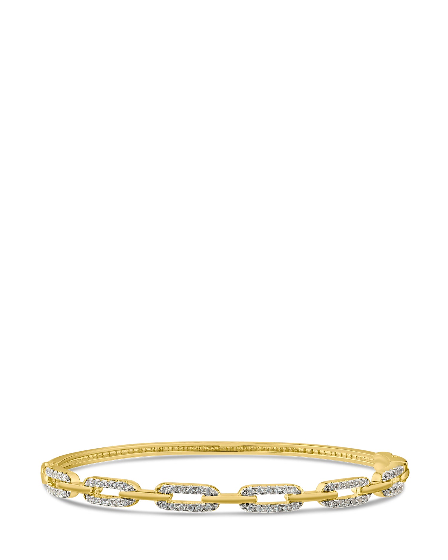 Delicate pave cubic zirconia link bangle in two-tone plated brass. The perfect stackable piece for any jewelry collection.