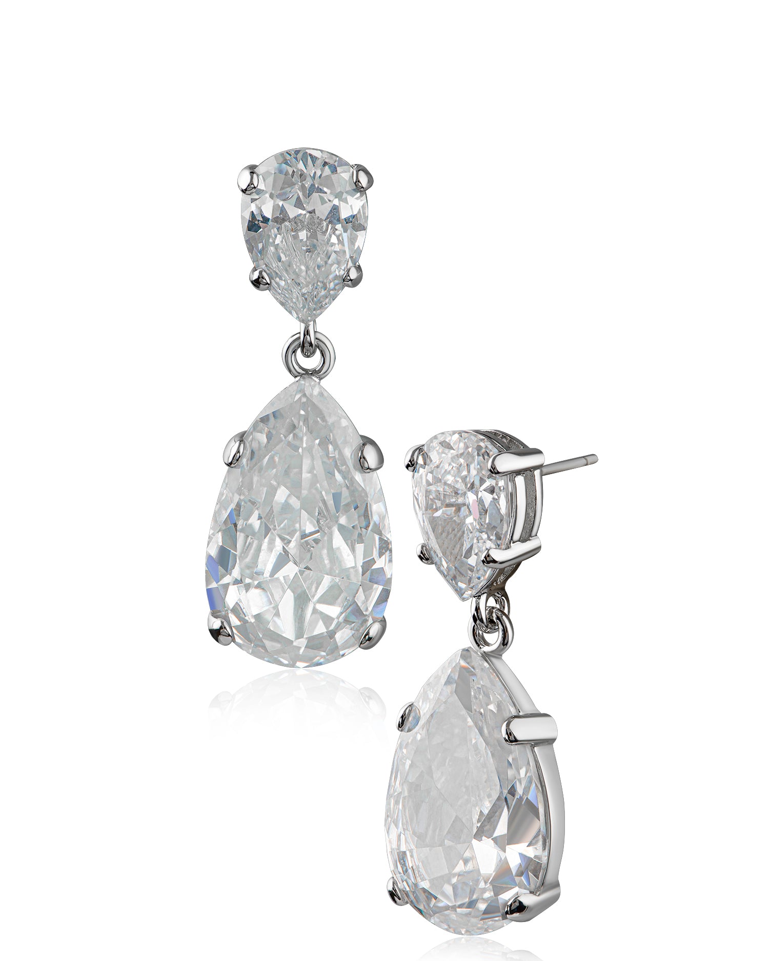 Make a statement with these double shiny and shimmering pear shaped drop earrings.